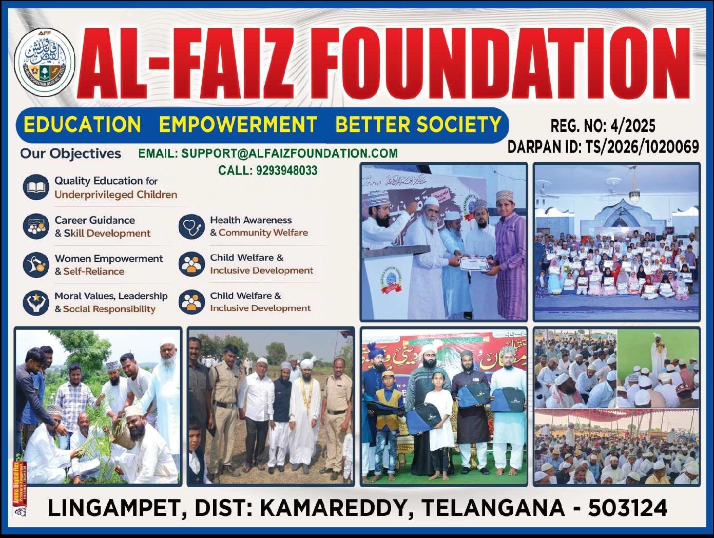 AL-FAIZ FOUNDATION (AFF) is a registered (Reg. No.: 4/2025) non-profit welfare organization established in 2025. We operate as a non-political entity dedicated to the upliftment of Telangana.